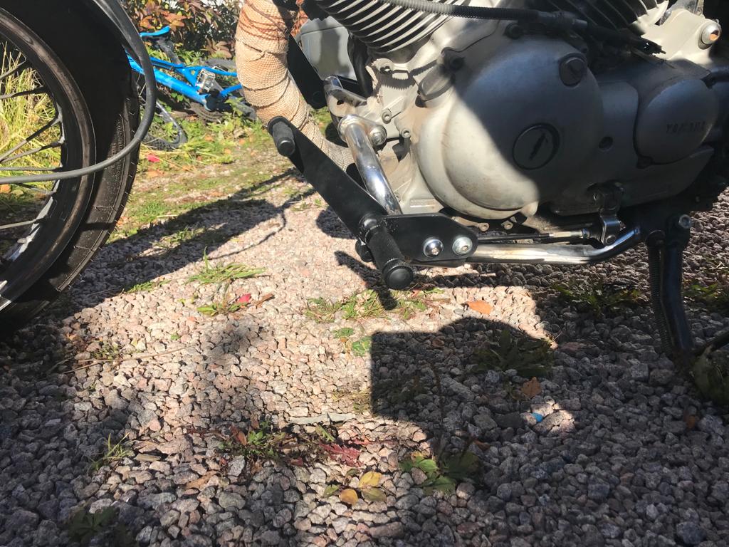 Siitä alkoi hieman kinkkinen urakka, sillä jalkatappien siirtäminen ei ole projektina helpoimmasta päästä, mutta lopputulos oli oikein sopiva pyörän omistajalle – joka ajelee nyt täysin tyytyväisenä ajopeliinsä, nauttien ajokokemuksesta joka ikinen kerta täydestä sydämestä! Se on joskus pienestä kiinni.
